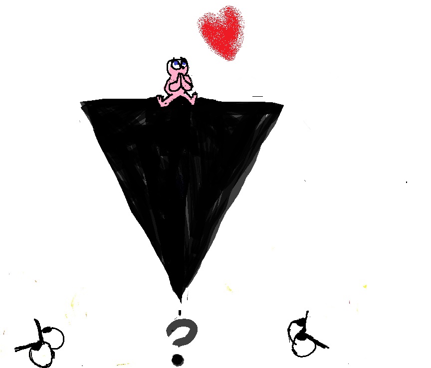 That's me, on top of the triangles, as naked as the day I was born. The triangle below is what's inside all of us, that large pool of motivations, assumptions - The unconscious.